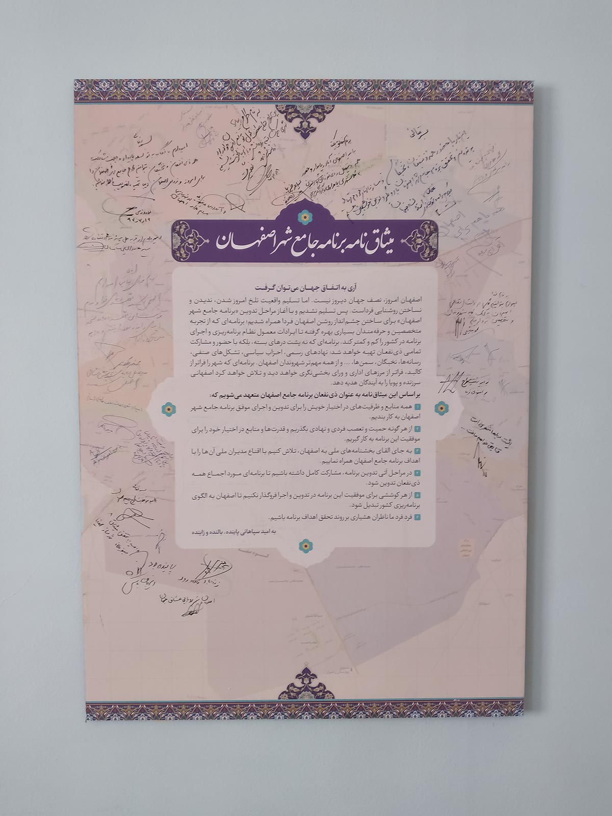 بر اساس این میثاقنامه به عنوان سهمداران برنامه جامع شهر اصفهان متعهد میشویم که: